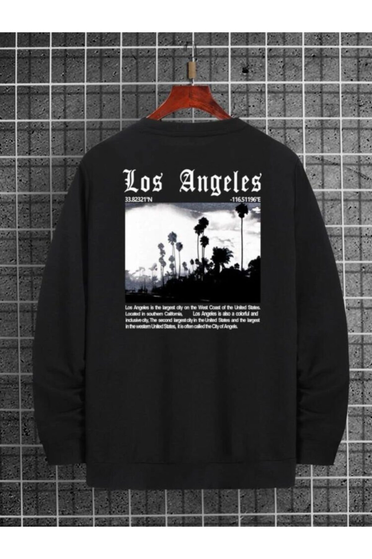 Unisex Siyah Los Angeles Baskılı Oversize Sweatshirt